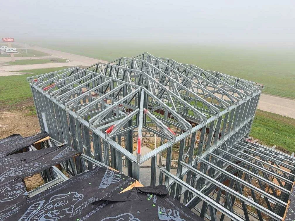 Cold-formed steel (CFS) framing does not warp, twist, or rot, and it does not support mold growth under normal environmental conditions. It is also not susceptible to termite or other pest damage. All framing members used are galvanized to a G90 coating standard or equivalent, providing corrosion resistance appropriate for typical residential construction applications. When properly specified and maintained, CFS framing can offer long-term material stability with reduced risk of degradation over time.